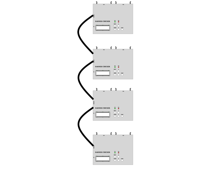 本体間を通信ケーブルで接続することにより、検査ピン数を拡張可能です。